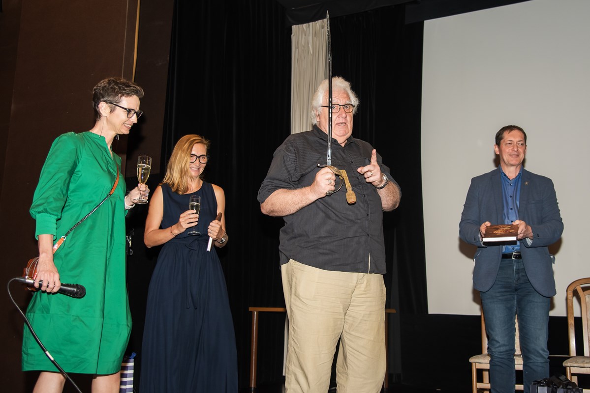 Křtící šavle patří Radku Galašovi, autorovi knihy. Má ji po svém dědečkovi jedná se o četnickou vycházkovou šavli z 30. let 20. století. Není broušená, tak se nedá použít jako zbraň a je určena čistě na parádu.