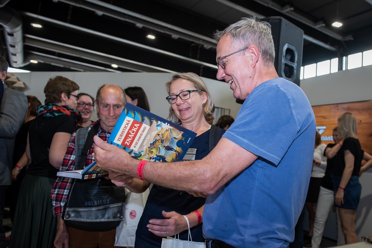 Šampaňského bylo naštěstí dostatek, a tak jsme se hned po představení nastole vrhli na křest knížky Turististická značka, které vše nejlepší popřáli náčelník značkařů Klubu českých turistů Pavel Přílepek a zubař a horolezec Matěj Bernát. Na počest této akce dostali všichni hosté kromě knížky i tatranku a májku na posilnění na cestu domů.