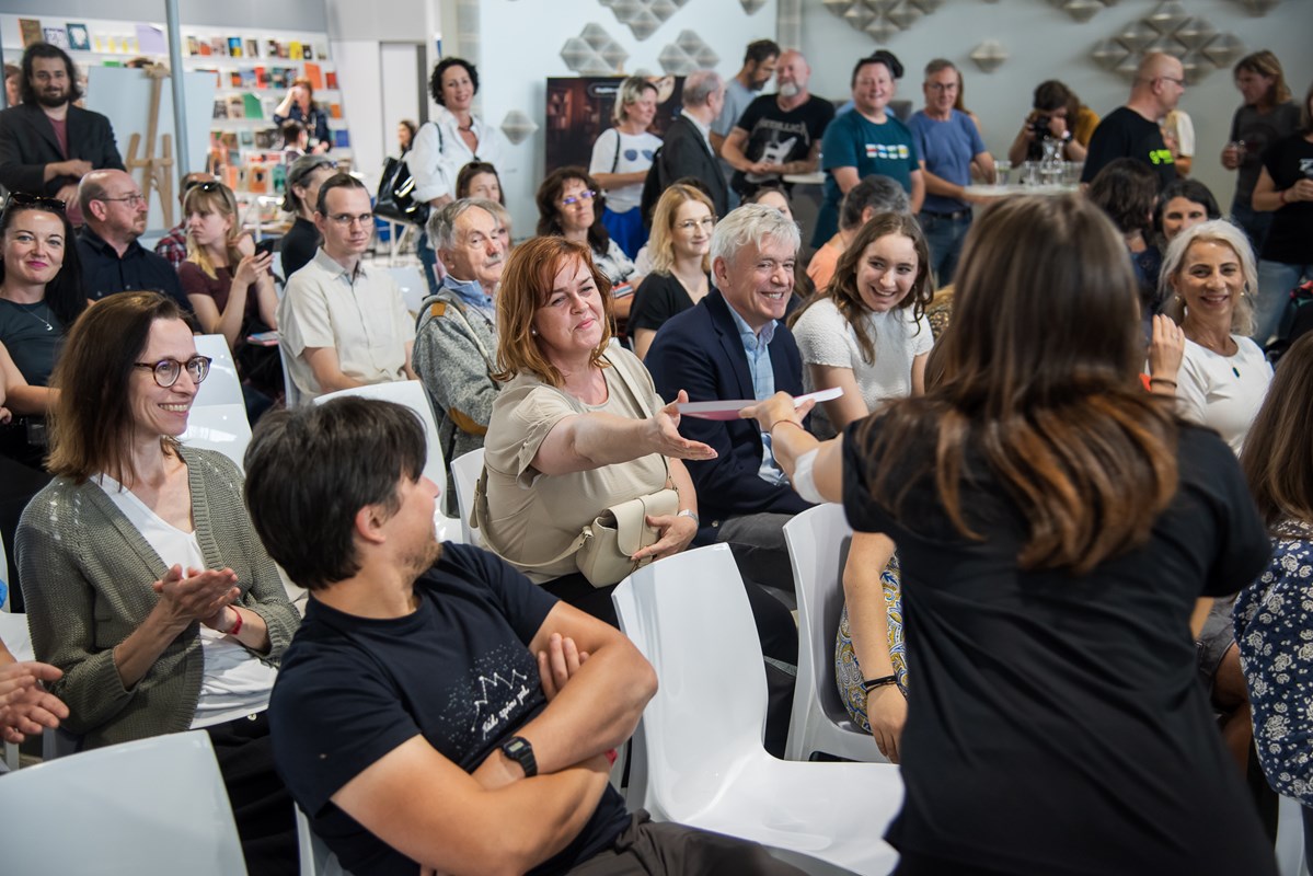 Do sálu Palmknihy & Albatros Media nás přišla podpořit řada našich autorů, kolegové, majitelé společnosti i přátelé. Moderování se ujal Karel Pošíval a o křest stolu se postarali marketingová ředitelka Albatros Media Pavlína Jiříková, ředitel nakladatelství v Albatros Media Petr Baláš a náš autor a kamarád Mára Holeček.