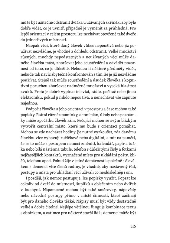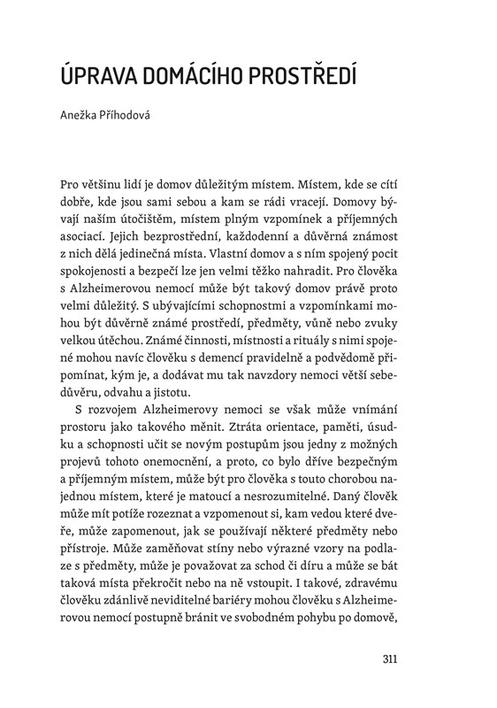 a kteří třeba do této chvíle o Alzheimerově nemoci nevěděli vůbec nic. Termínům, s nimiž se nemocní mohou setkat u lékařů či v lékařských zprávách, se však zcela nevyhýbáme. Zároveň může být tato kniha obohacením a inspirací také profesionálům a zájemcům z řad studentů. Stojí za zmínku, že není potřeba knihu číst od začátku do konce. Každý čtenář si může přijít na své u jiných částí. Některého může více zajímat, jak se onemocnění projevuje, jaký lékařský postup v tom či onom období očekávat, jiného možná více zajímá, jak nemocného podpořit a jakou pomoc mu nabídnout. V neposlední řadě jsou jistě i čtenáři, které více do hloubky zajímá struktura a funkce mozku, a způsob, jakým onemocnění jeho funkce narušuje. Čtenář si dle obsahu může vyhledat pasáže, které jsou z hlediska jeho otázek a potřeb právě aktuální a k vynechaným pasážím se může vrátit později.