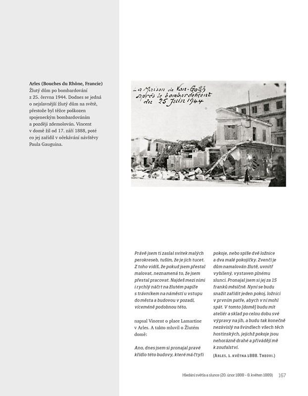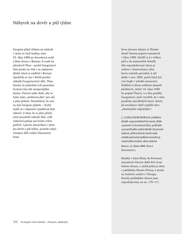 Kunsthistorička Gloria Fossi společně s dvojicí fotografů probádala fyzická i duševní zákoutí, jež inspirovala nejpozoruhodnější umělecká díla Vincenta van Gogha. Zatímco Gloria líčí Vincentovu osobní i uměleckou cestu životem, fotografie Maria Dondera a Danila De Marca vdechují jeho minulosti nový život. Tato cesta po stopách Van Gogha sleduje jeho skutečné kroky po všech zemích, kde kdy žil: Nizozemsku, Belgii, Anglii i Francii. Slučuje detailní porozumění místům i umění s tím, co je známo o Van Goghových pocitech a úvahách o životě, umění, knihách a autorech jeho doby – jejichž zdrojem je obrovská sbírka osobních dopisů rodině a přátelům, jež nám umožňuje nahlédnout lépe než kdy dříve, kým byl ve skutečnosti Vincent van Gogh jako člověk.