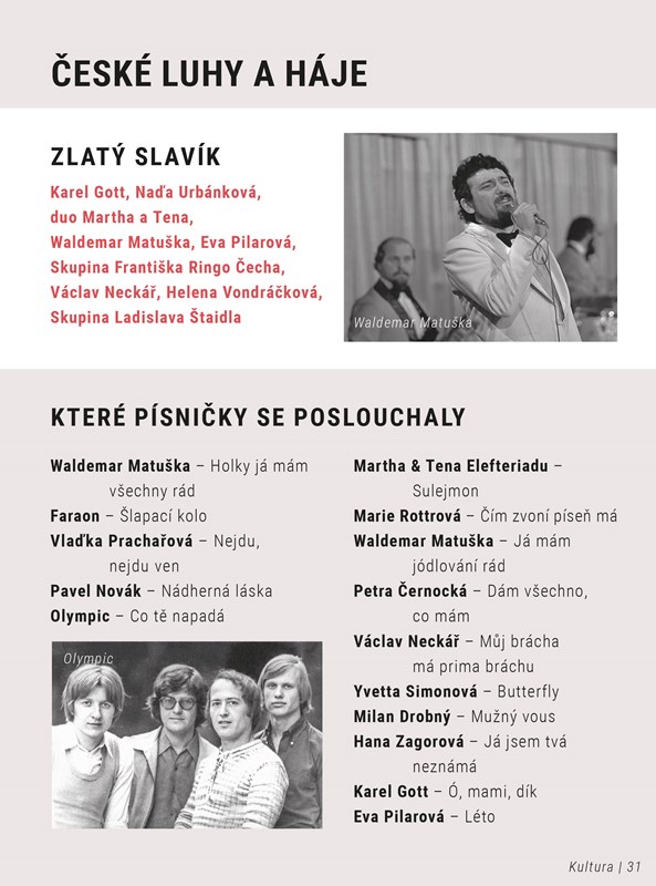 Krom tehdejší televize ale nebylo nic tak černobílé. Karel Gott pěl „Ó, mami, dík“ a Olympic zase „Co tě napadá“. Lidé si jako vždy našli dobrý důvod, proč se nermoutit příliš – třeba proto, aby jim neutekla v televizi další část seriálu Jaroslava Dietla nebo pánové Hlaváček a Krajíček z pořadu Vtipnější vyhrává. A smáli se dalšímu fórku Pan Vajíčka z televizní reklamy.