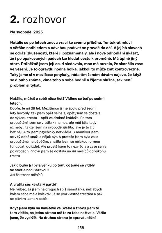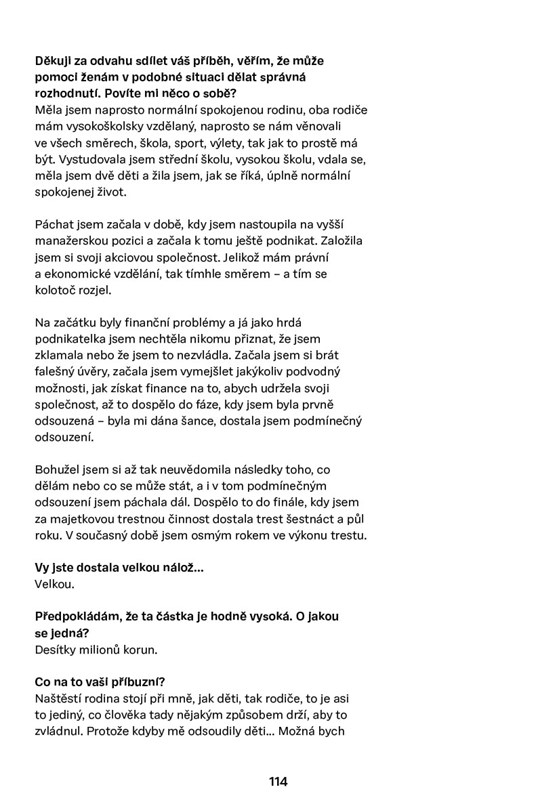 Tyto ženy nesou kůži na trh. Otevírají své rány, své strachy, svá selhání. A já jsem se rozhodla otevřít to s nimi. Protože když se podíváte na jejich životy v souvislostech, zjistíte, že nic není tak jednoduché, jak se zdá zvenčí. Že za každým trestným činem stojí člověk – často zraněný, často ztracený, ale pořád člověk.